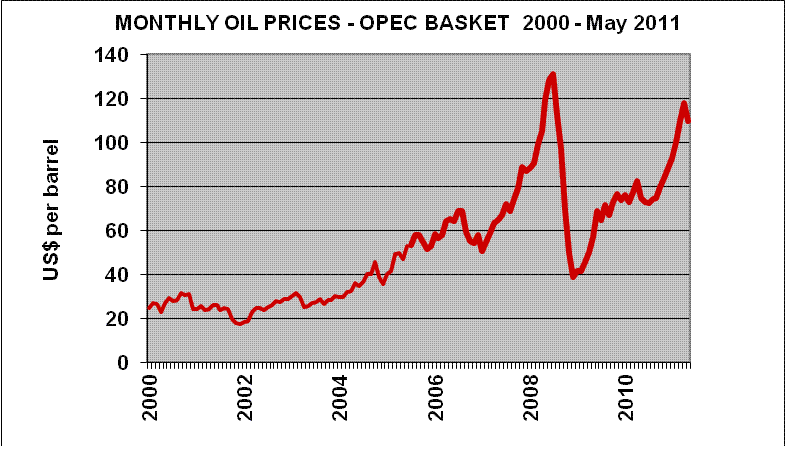 The next stage in the story concerns the OPEC meeting held in Vienna on the 8th June. The key to calming the market lay with Saudi Arabia. Throughout the events of the Arab uprisings, The Kingdom had been making public statements to the effect that they would ensure no crude oil shortages as a result of the upheavals. However, there were some concerns among the more informed analysts. The normally cordial relations between Riyadh and Washington had taken something of a battering following the removal of President Mubarak. The view in Riyadh was that Mubarak had been a key "friend" of Washington for over 30 years. If the US treated "friends" in that way, what did the fate of the Al Saud look like in the near future? All the signs were that the Al Saud were upset and therefore less likely to try and accommodate Washington's desire to reduce oil prices. This was reinforced because, as will be developed below, the various financial handouts which Abdullah promised his people to assuage unrest, implied higher prices' [22] .