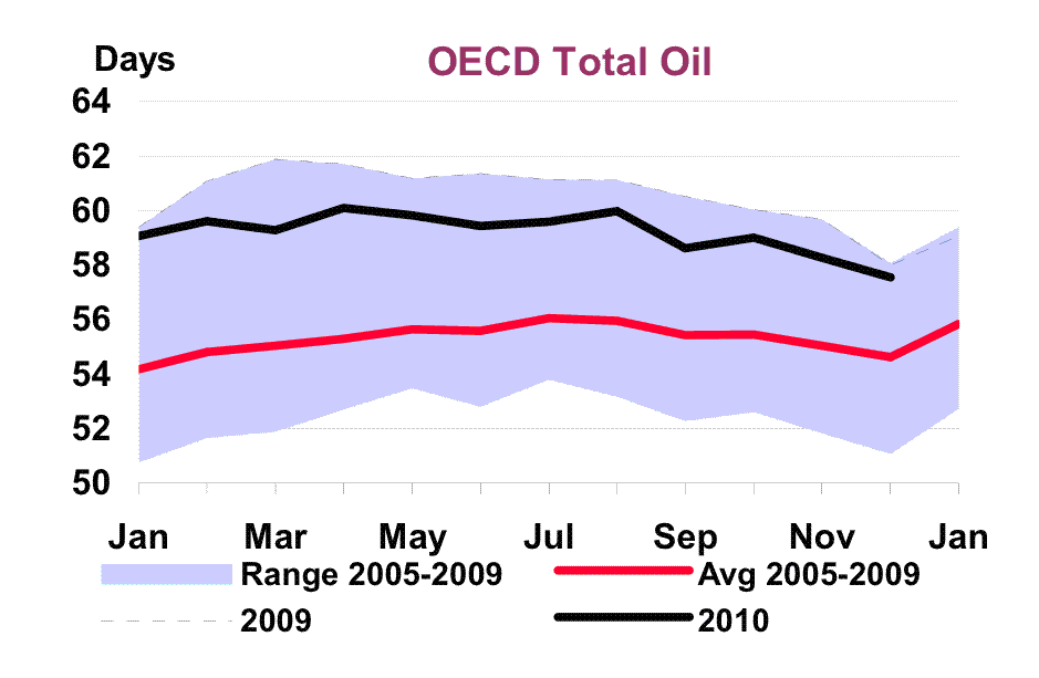 There was also concern about a weaker US dollar which the paper markets have come to see as a harbinger of higher oil prices. This is empirically supported and between April and November 2010, there was a 0.83 correlation between the $/Euro rate and the price of WTI. The transmission mechanism for this relationship is very questionable. Oil is priced in dollars and the assumption is that a weaker dollar makes oil cheaper for non-dollar buyers of oil which would increase demand and therefore increase prices. However, given that the main non-dollar based currency is the euro and that in the euro zone almost 80 percent of the final prices of gasoline and diesel consists of sales taxes imposed by the consuming governments, changes in the dollar exchange rate are unlikely to have any immediate effect.